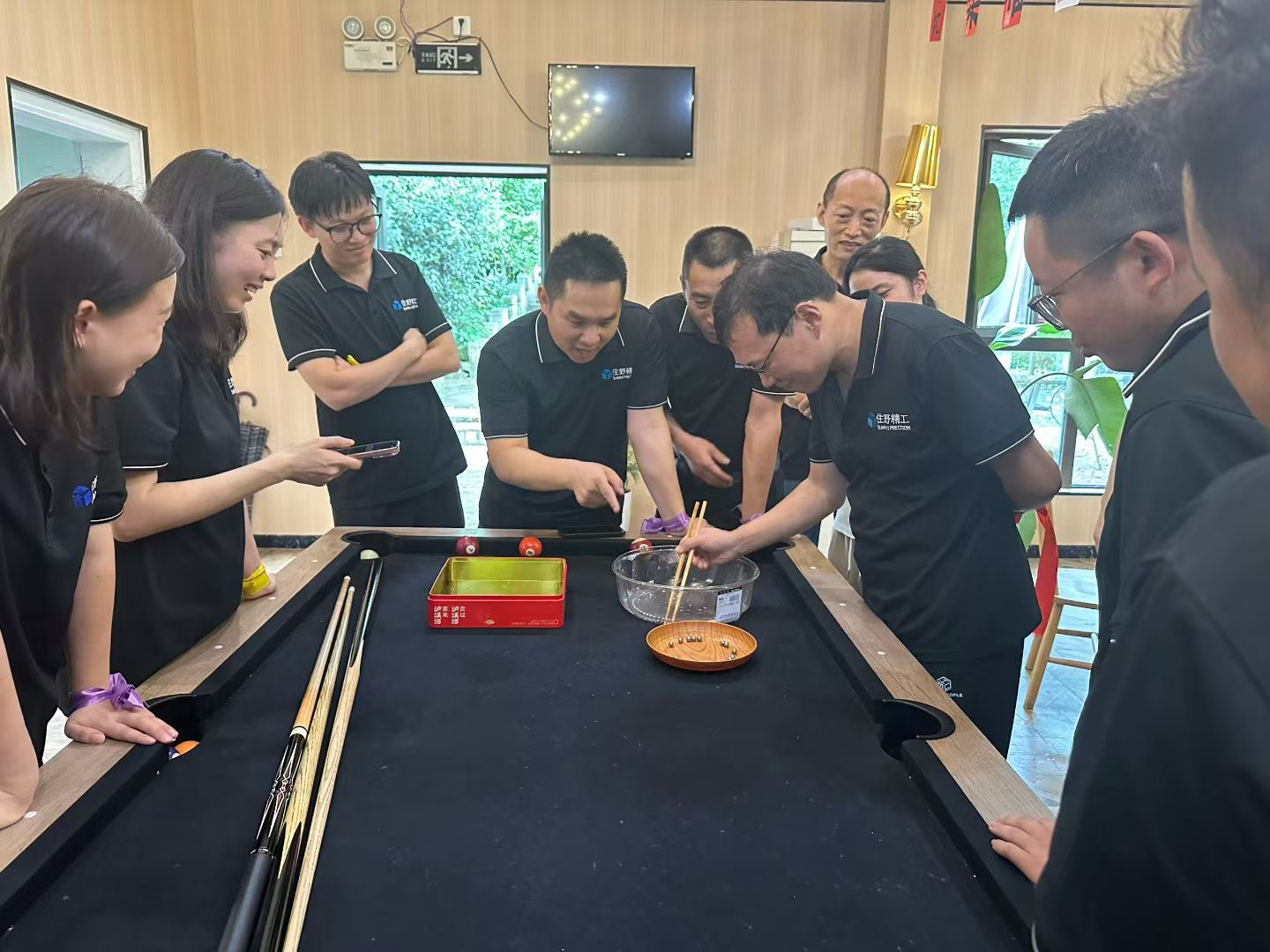 台球桌旁,同事们精准击球,展现出工作之外的专注与技巧;