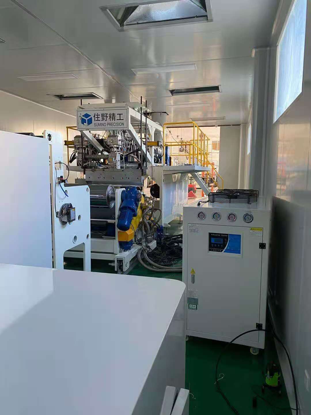 历时三月,在南京住野精工设计部和生产部的同事们努力下,不负众望,在工期内完成了TPE流延压花薄膜生产线的研发设计,生产制造,安装调试。下面让大家和我们公司全体同仁一起来回顾整个项目。