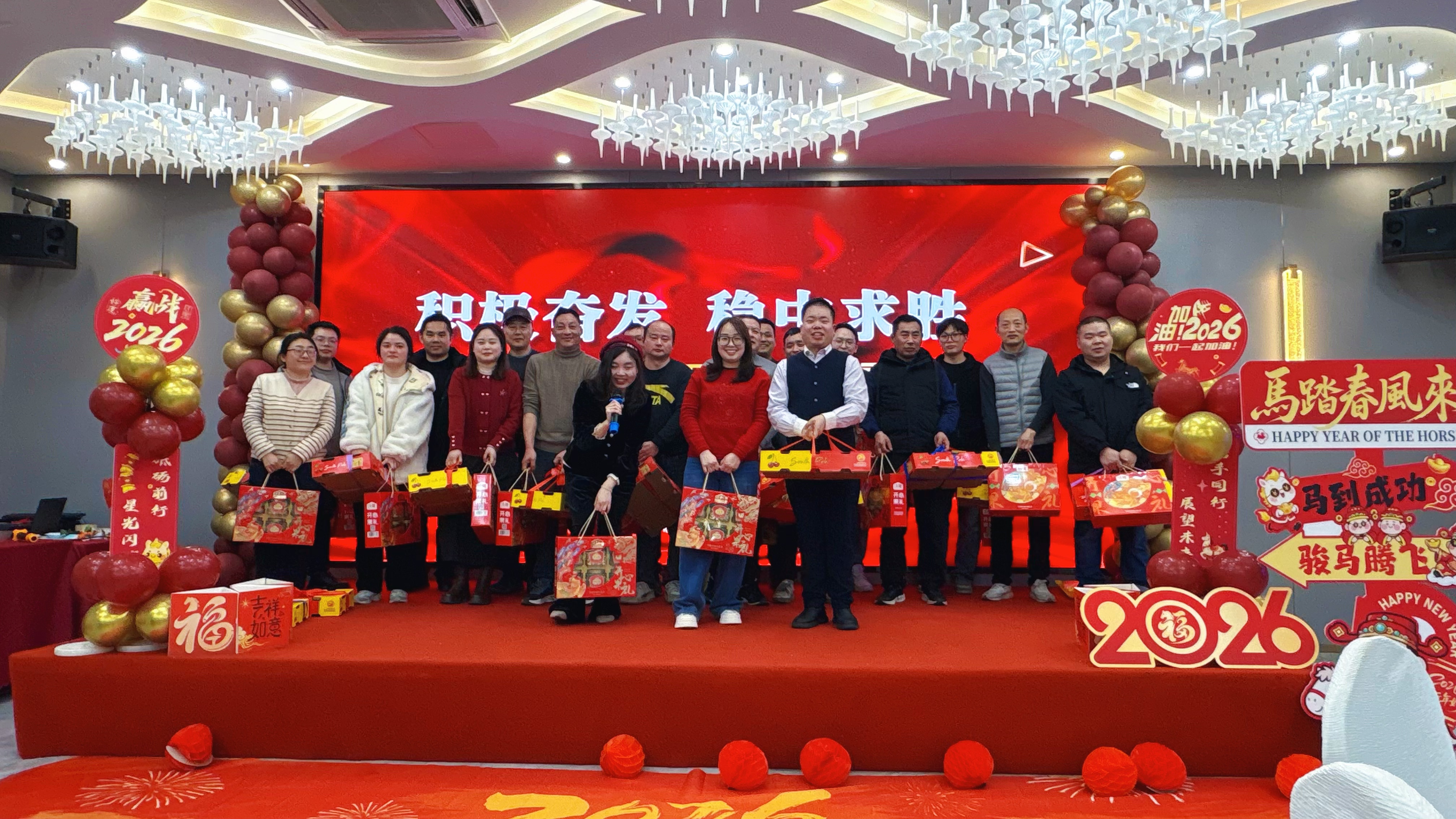 庆典尾声,老板与老板娘共同登台,向全体员工发放了满载认可的年终奖,并致以简短而真挚的感谢。老板在总结发言中,带来了令人振奋的消息:2026年公司订单饱满,将是充满挑战与机遇的忙碌一年。